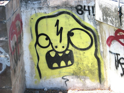 Passing over Nuuanu stream, I spy a little yellow creature. Interesting graffiti art. Then, I look down and spy the blue box. I think it's a sign from above bc I've been telling myself to start reading the daily newspaper.